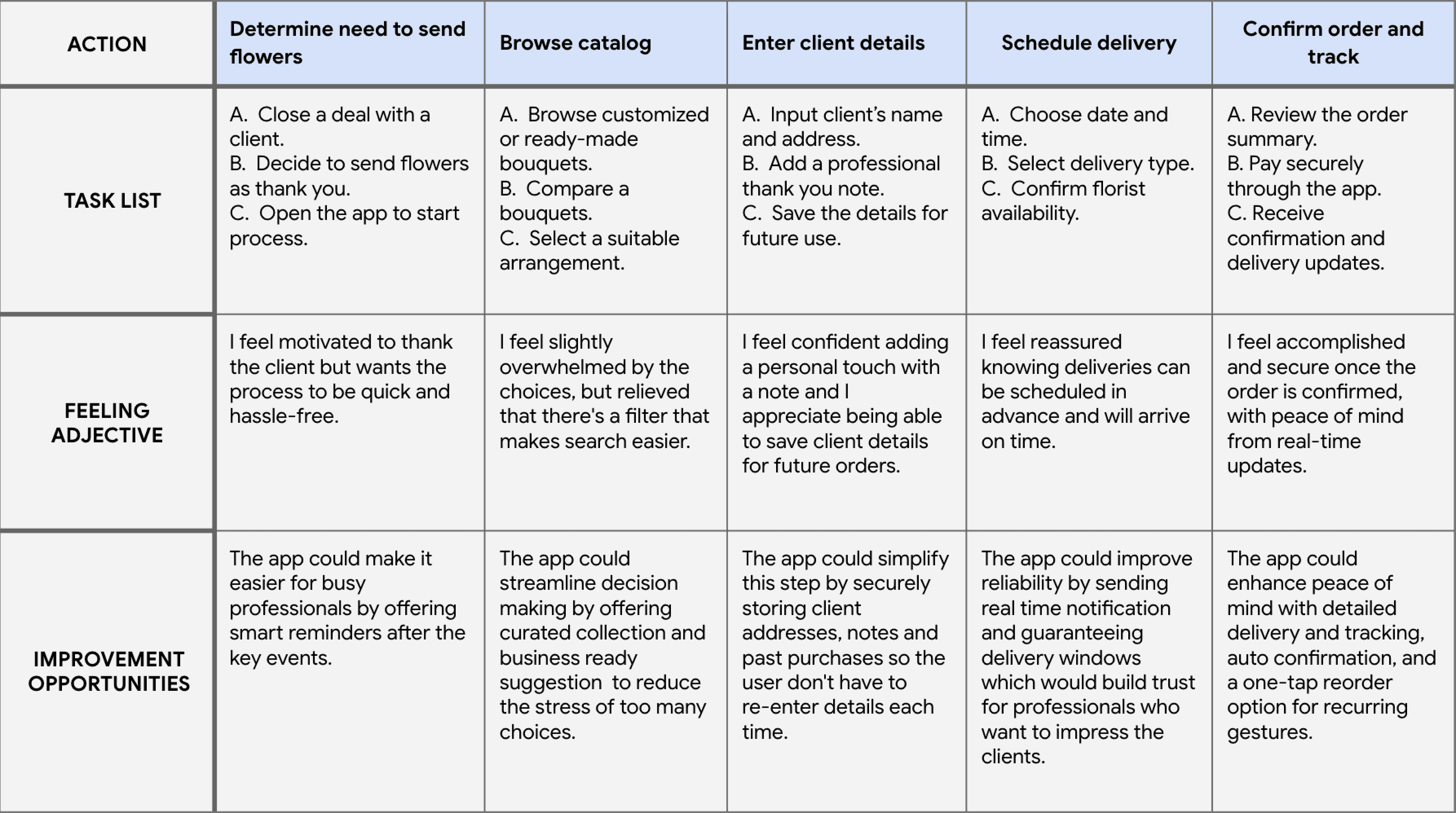 delightful experience that mirrors the warmth as buying flowers in person. These usability and trust gaps prevent the floral
