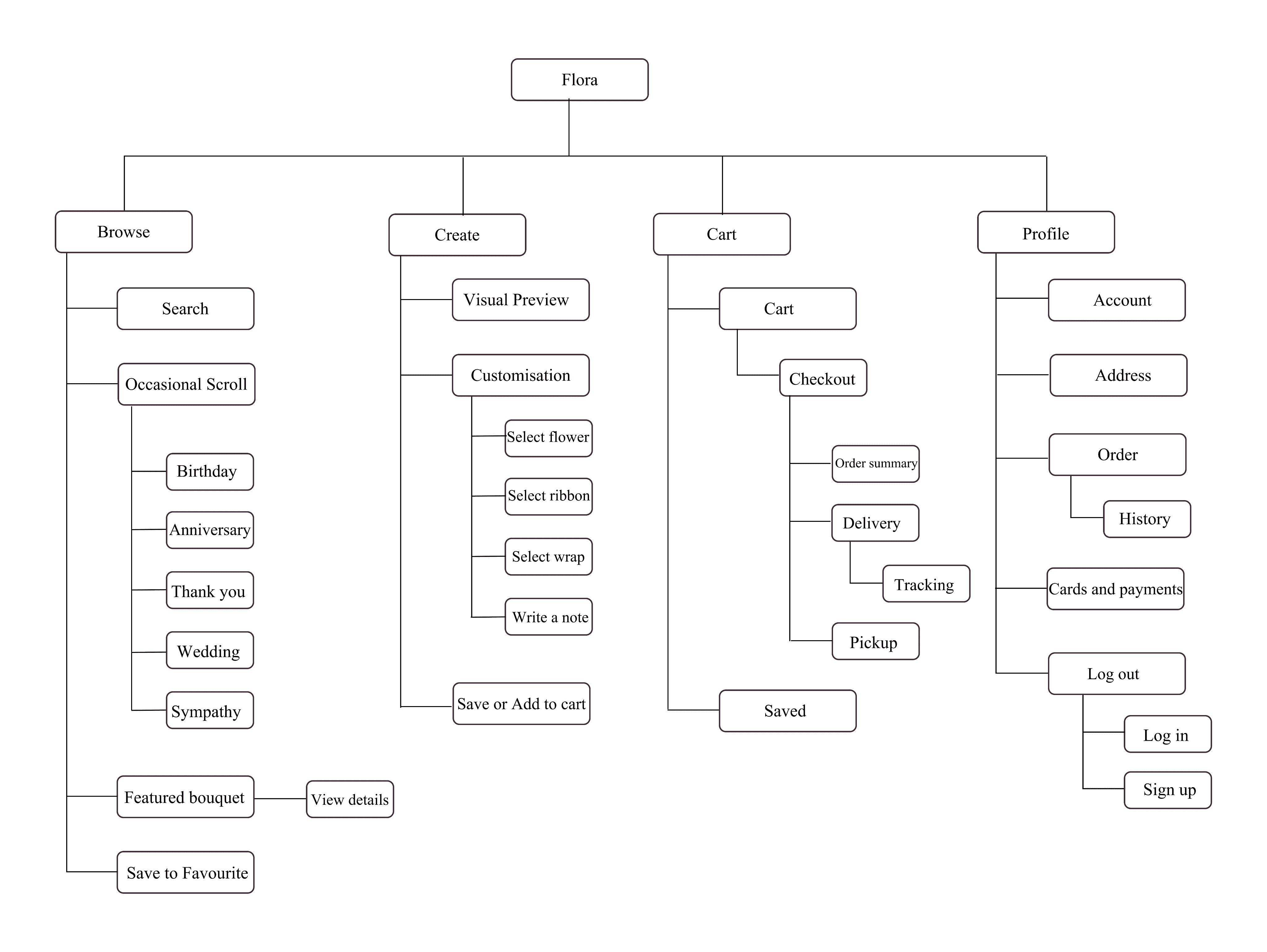 Across two usability testing rounds with four participants, I evaluated how easily users could browse flowers,