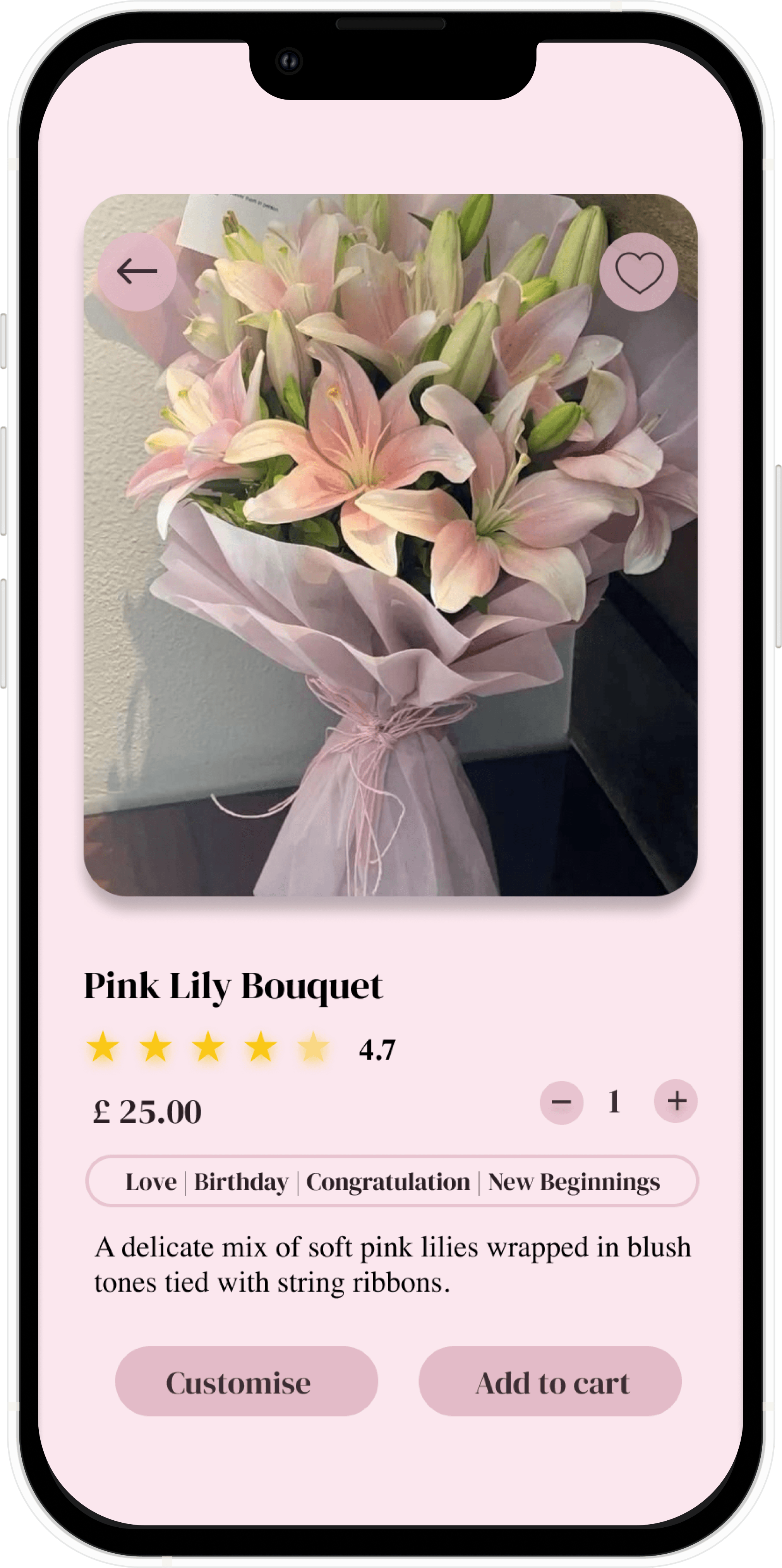 the floral market uniquely challenging. Existing platforms rarely provide intuitive customisation, transparent delivery and